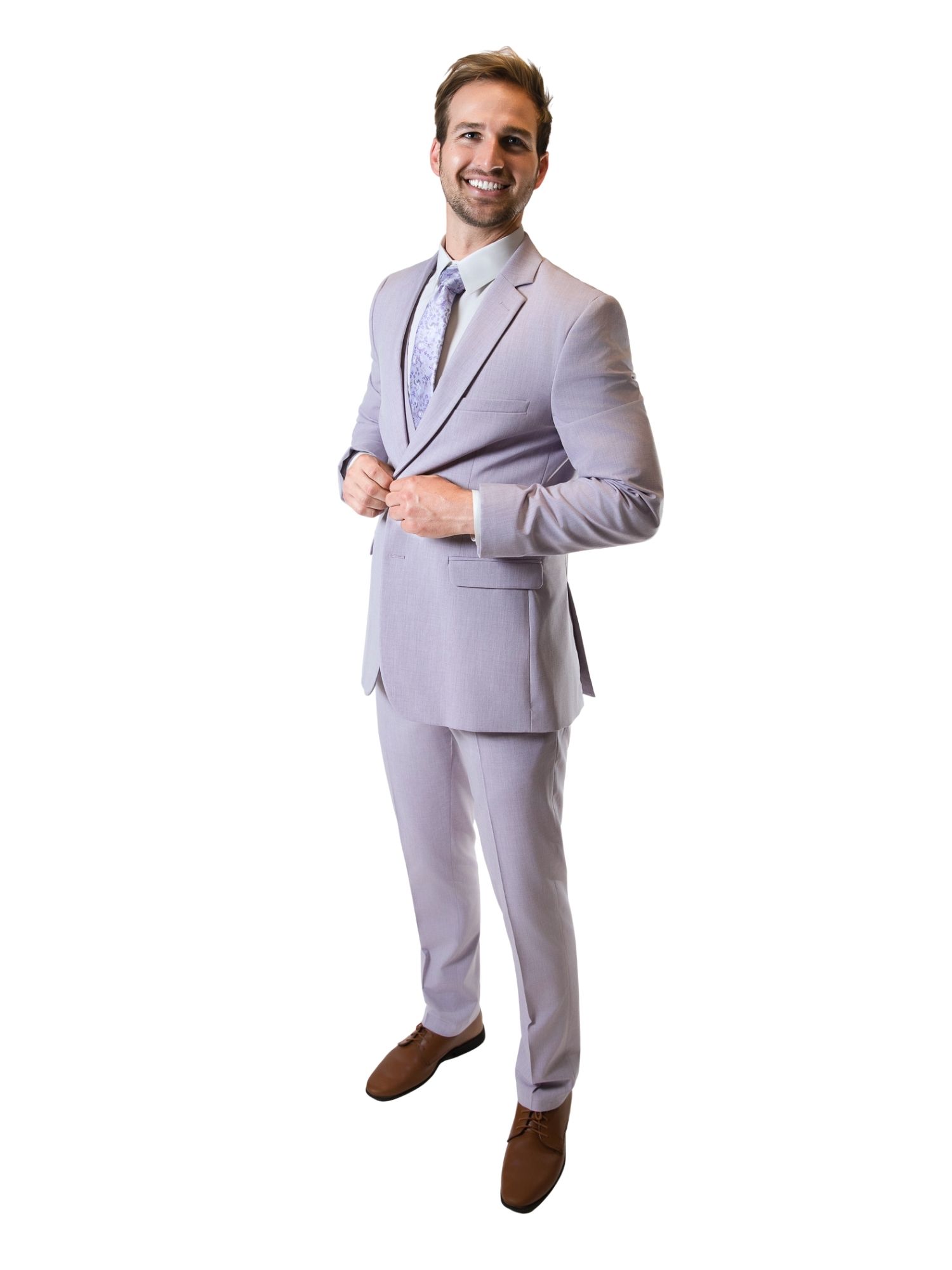Our Lavender Notch Suit is a timeless classic featuring a slim-modern fit with a choice of modern or ultra-slim pants. The lavender two-button suit is versatile for weddings, business, and prom. Present confidence and charm in an elegant, timeless piece.