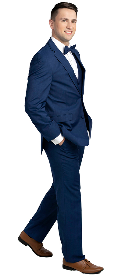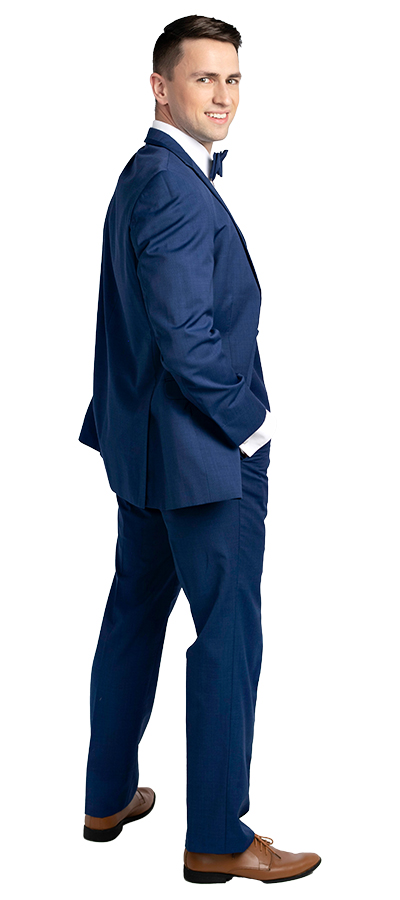 The Colbalt Blue Tuxedo by Allure Men is a slim fit design with a beautiful vibrant blue 2 button jacket. Choose favorite color tie in a long or bow tie style. The Cobalt Tuxedo is a great everyday look for any event or gathering.